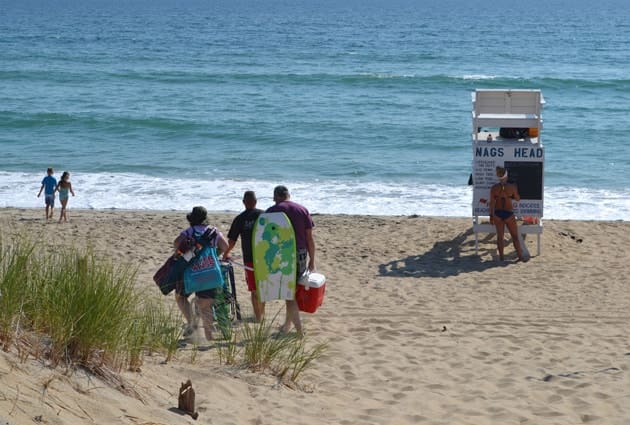 Home » Nags Head Beach Access » Gray Eagle Street Beach Access Nags Head – Milepost 16.5 Parking Spots: 29 Amenities + Details Paved Parking Porta-potty Lifeguard Wooden Walkway Pet Waste Bags This beach access is next to Jennette’s Pier on the north side.